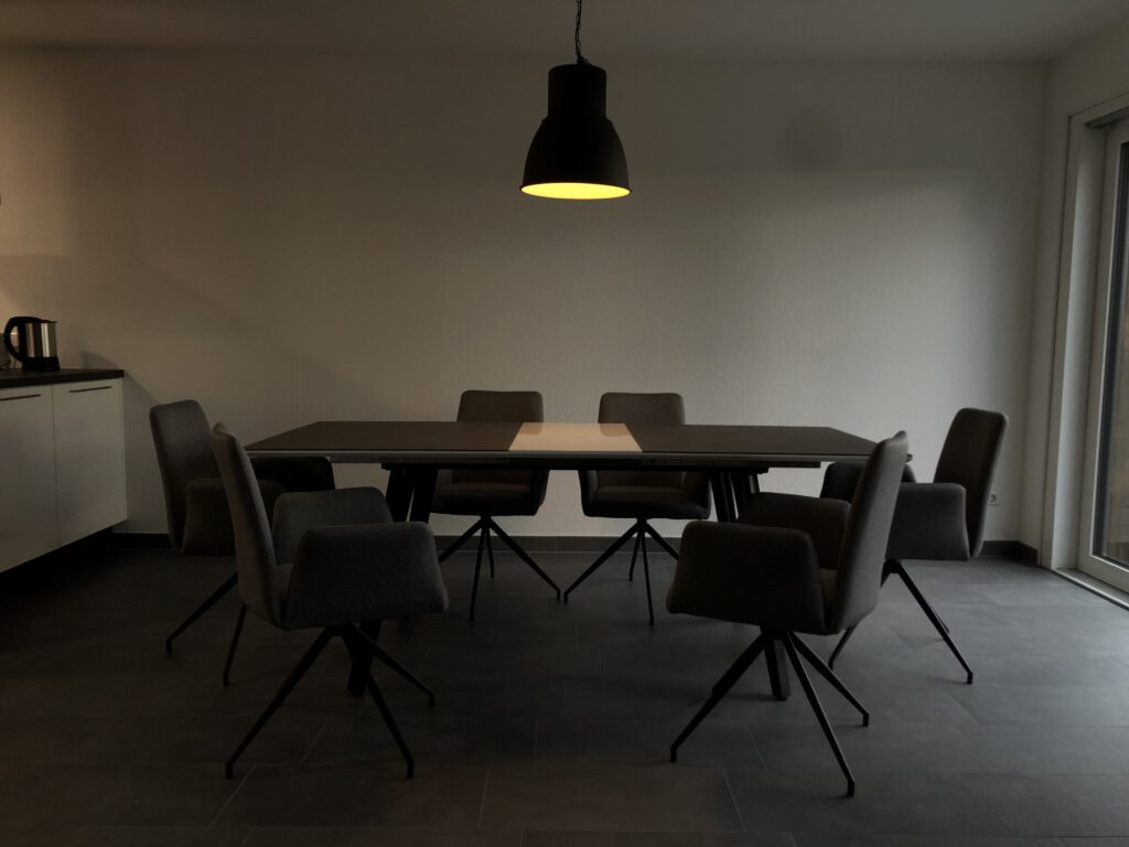 Von allen Räumen gelangt man auf den großen Balkon (45 m²), der nicht nur in der Lounge Ecke zum verweilen unter freiem (Sternen)Himmel einlädt. Er ist außerdem mit einem großen Esstisch und Grill ausgestattet.
